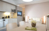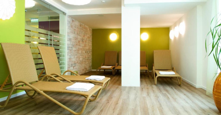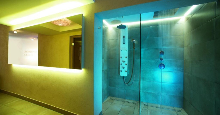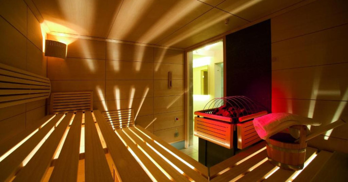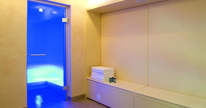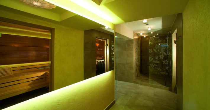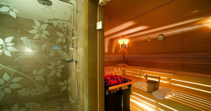The 120 m² spa area features a Finnish sauna, sanarium, and steam bath. The sauna has access to a garden where guests can walk on different surfaces. A ski storage room and free private parking are also available.