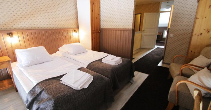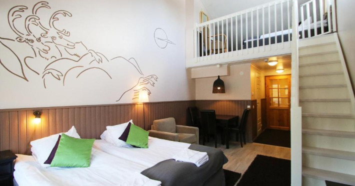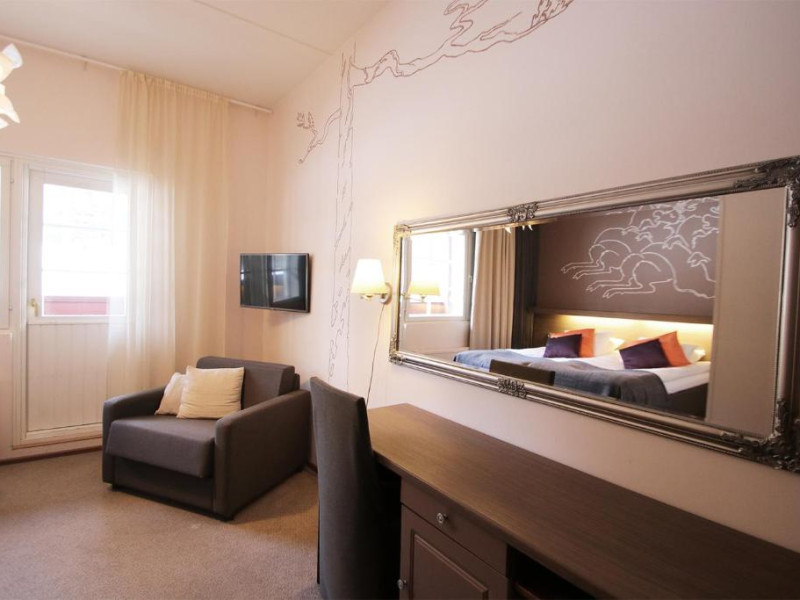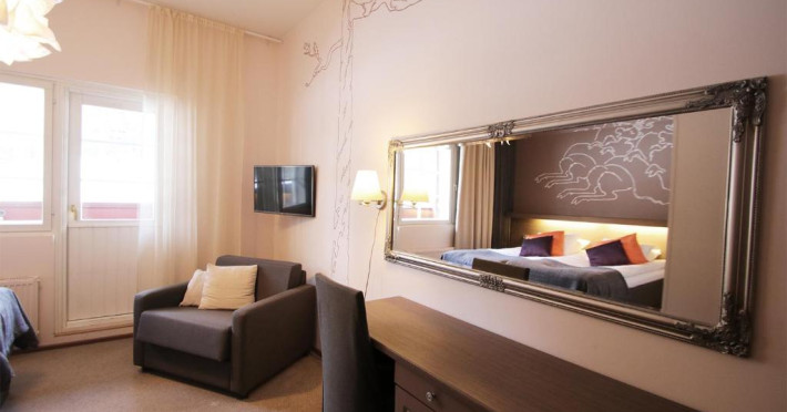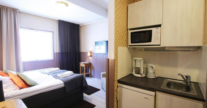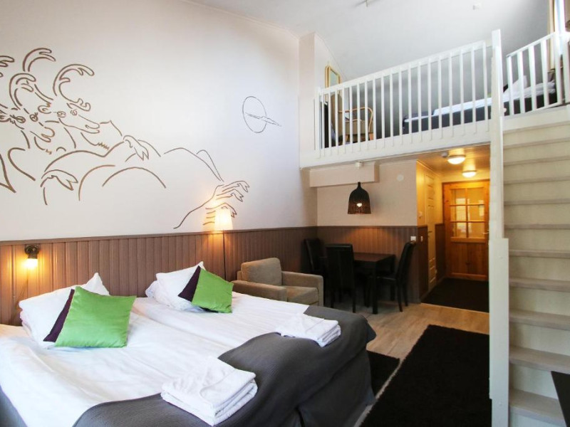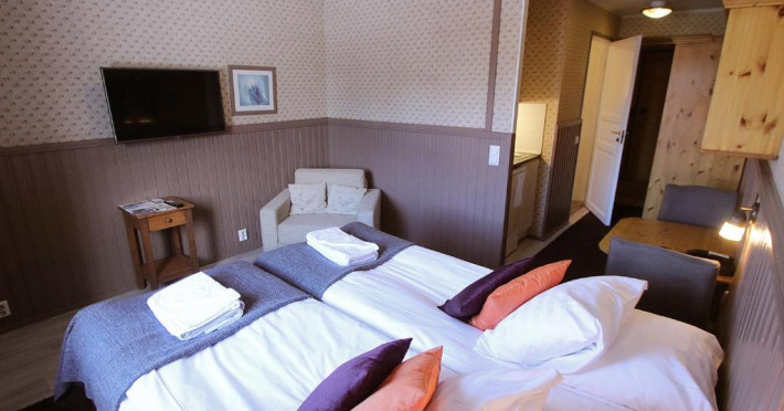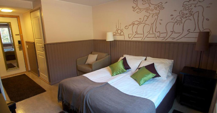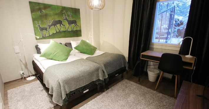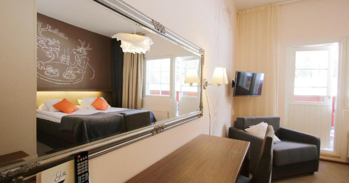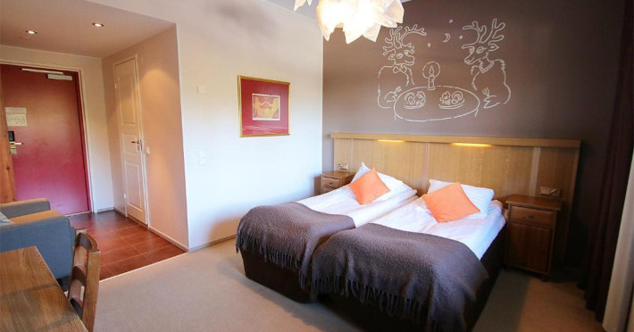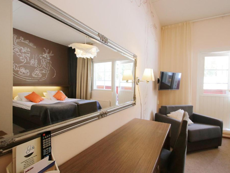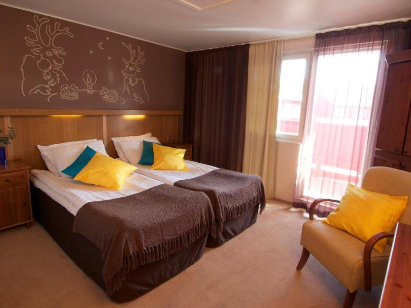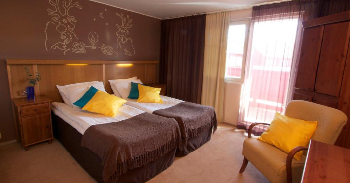 Camerele sunt decorate in stil scandinav contemporan, cu lemn natural și tonuri calde, oferind un refugiu perfect după o zi plină de activități. Hotelul dispune de saună finlandeză, restaurant cu specific local și lounge bar unde puteți savura băuturi calde in atmosfera specifică nordului.