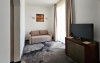 Apartamente: 38 - dintre care 24 apartamente standard cu paturi separate (se pot uni sau desparti), living cu canapea extensibila, au vedere spre mare sau spre lac; 6 apartamente superior dispun de dormitor cu pat matrimonial, living cu canapea extensibila, hol, au vedere spre lac; 5 apartamente executive cu pat matrimonial, canapea extensibila, terasa cu vedere frontala la mare si 2 apartamente prezidentiale- dispun de 2 dormitoare (unul cu paturi separate; unul cu pat matrimonial), living, 2 bai, vedere spre mare.Aripa istorica (etajele 1-3): a intrat intr-un proces amplu de mentenanta incepand cu 2025. Lucrarile includ inlocuirea mochetei, a usilor (interioare si exterioare) si modernizarea tamplariei ferestrelor cu sisteme din aluminiu cu geam tripan si protectie UV pentru izolare fonica si confort termic superior. De asemenea, sistemul de acces in camere si ventilatia au fost actualizate.