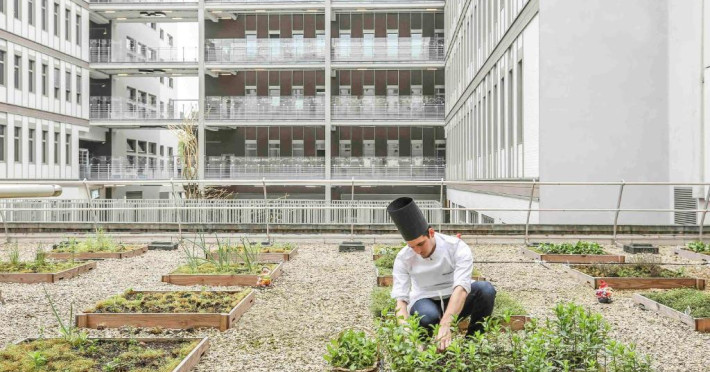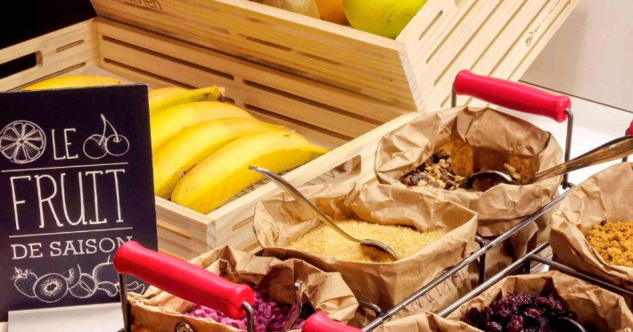 In fiecare zi se servește un mic dejun tip bufet alcătuit din produse dulci si sărate, printre care ouă, salată de fructe, iaurturi si sucuri. Se oferă de asemenea produse de patiserie si madlene frantuzesti proaspete, precum si o băutură caldă si un fruct la pachet. In afara programului normal de mic dejun, oaspetii se pot bucura de o variantă mai usoară, disponibilă incepand cu ora 04:00. La mică distanță de mers pe jos se găsesc restaurante si baruri de toate tipurile.