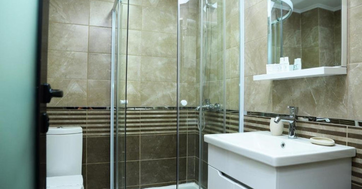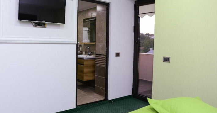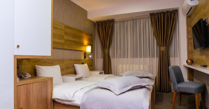 Camera tripla avand aproximativ 28 mp, oferta un pat matrimonial si un pat de o persoana, aer conditionat, baie proprie cu dus, TV, minibar si WiFi gratuit, dotari similare cu cele ale camerei duble.