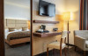 Camerele moderne includ aer, un TV cu ecran plat cu canale prin satelit și programe Sky gratuite, un minibar, un seif și o baie.