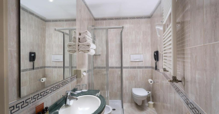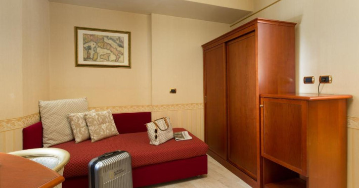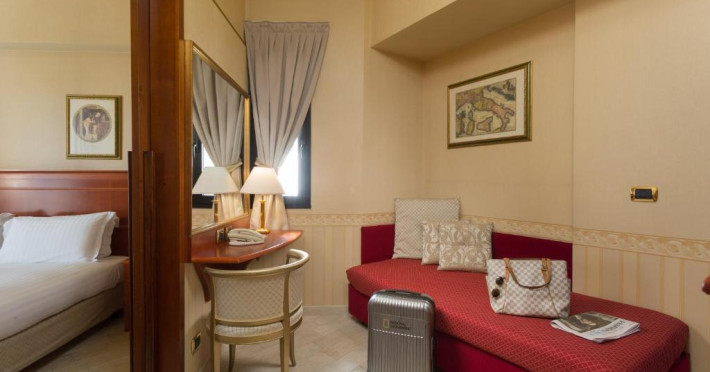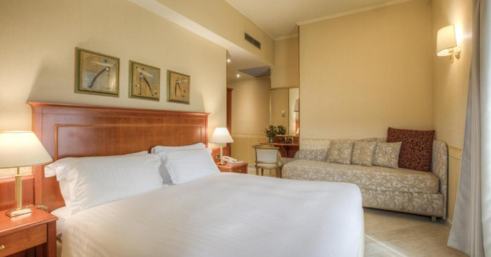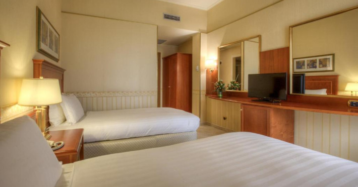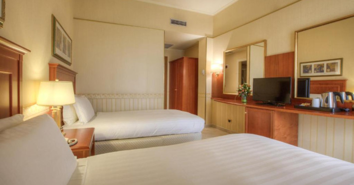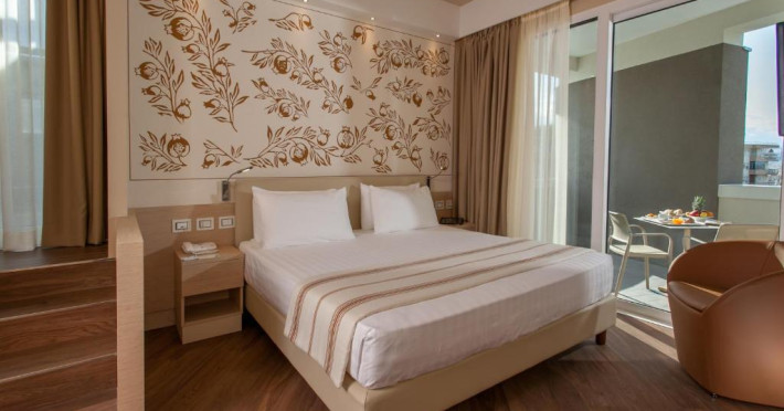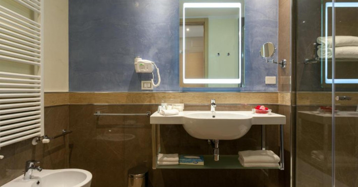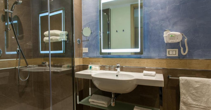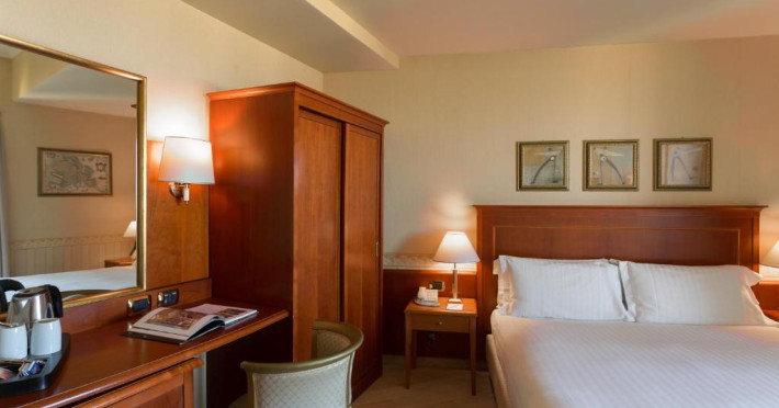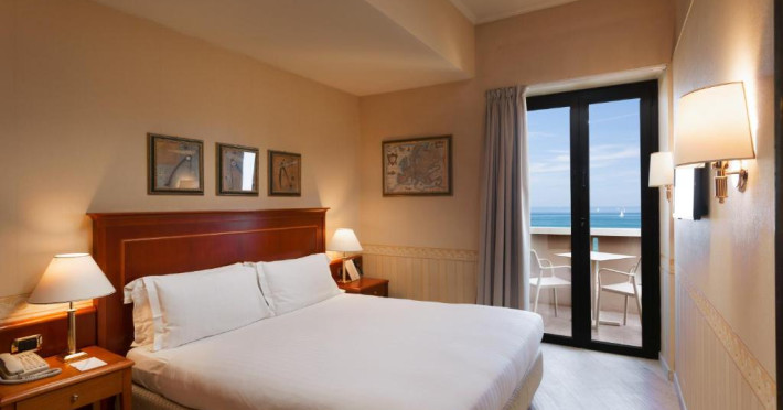 Toate camerele de la acest hotel de 4 stele au TV cu ecran plat cu canale Sky, mobilier modern, aer conditionat, minibar si balcon. Suitele au zonă de relaxare, baie cu o cadă spa si vedere la Marea Adriatică.