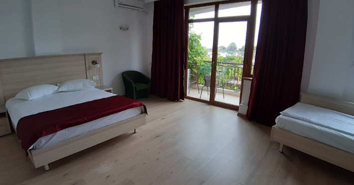 Camera Dubla Superioara Family (vedere lac): pat matrimonial si o canapea extensibila, capacitate maxima 4 adulti si 1 copil 0- 4 ani