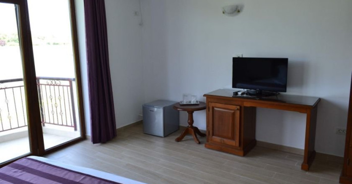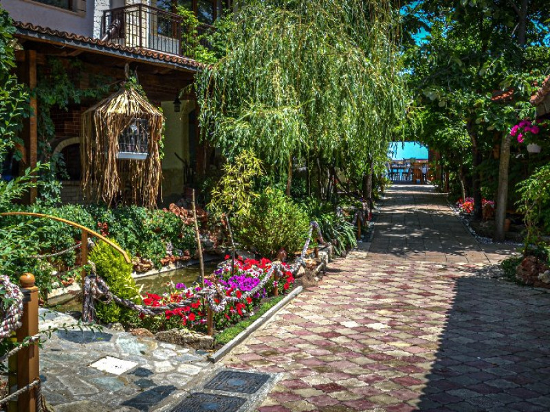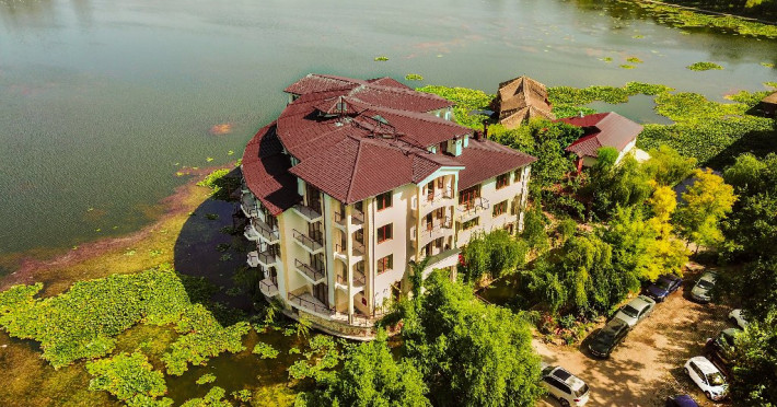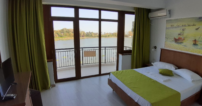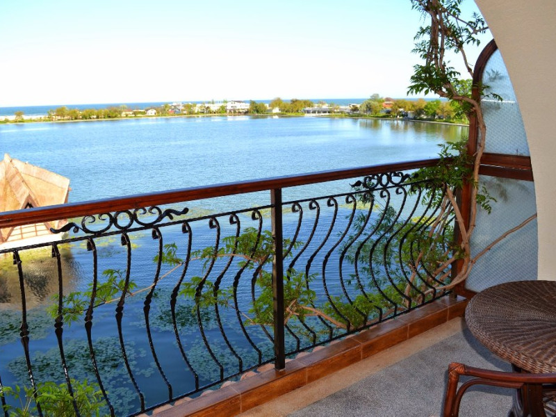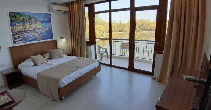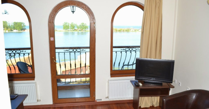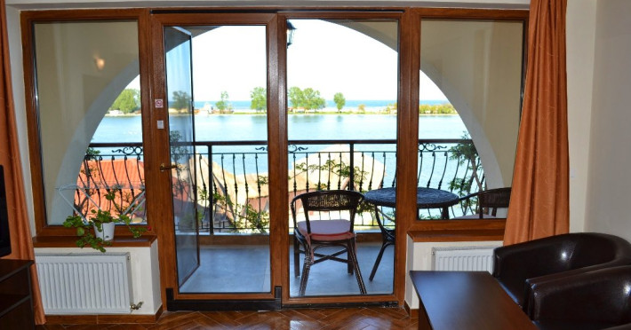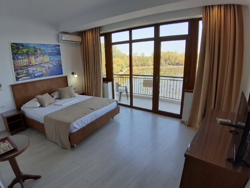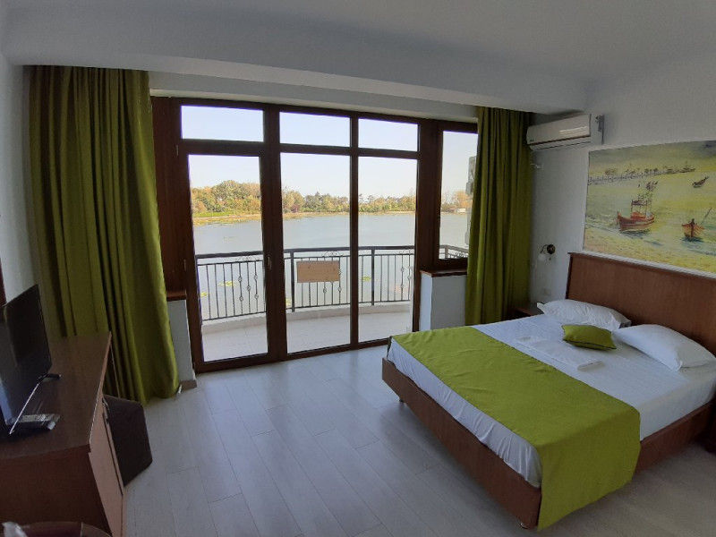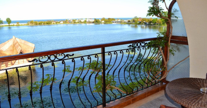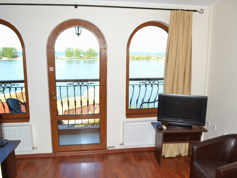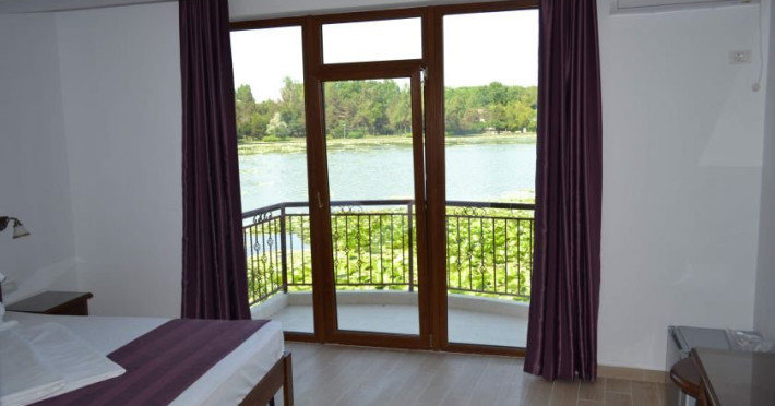 Hotelul dispune de camere cu balcoane spatioase cu o priveliste de basm, lacul plin de nuferi si marea in valuri. In paradisul creat de natura, cu diverse specii de arbusti, flori, plante exotice si salcii pletoase, se afla restaurantul cu separeuri discrete, terase pontoane si mese prin copaci, cu un meniu variat cu preparate din peste, fructe de mare si deserturi delicioase servite la racoarea lacului si briza marii.