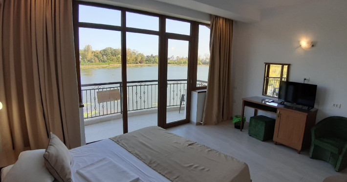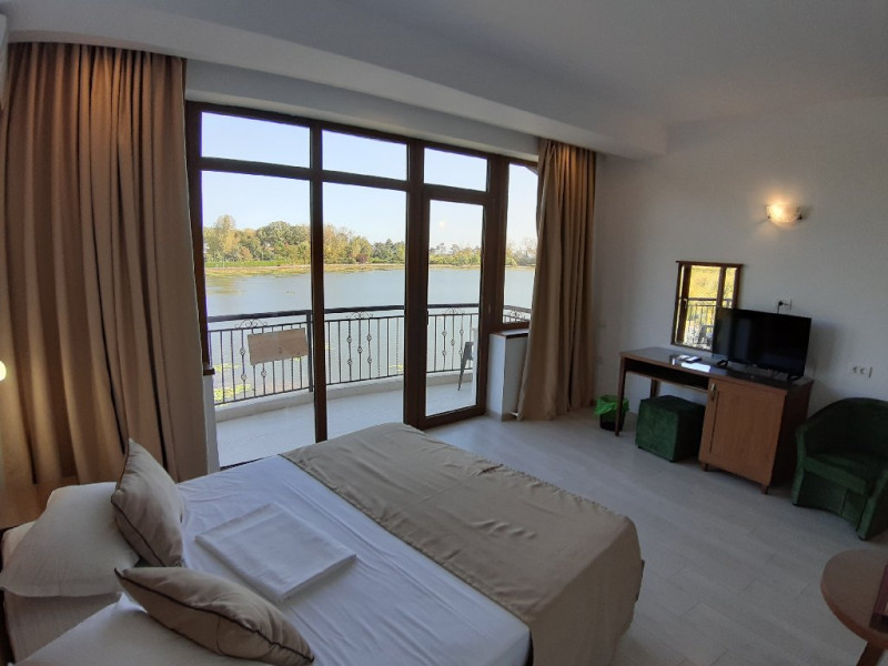 Turistii se pot bucura de vederi uluitoare direct din camera sau de pe terasa, cu nuferi, lebede si rate salbatice, perfecte pentru fotografii si momente romantice.