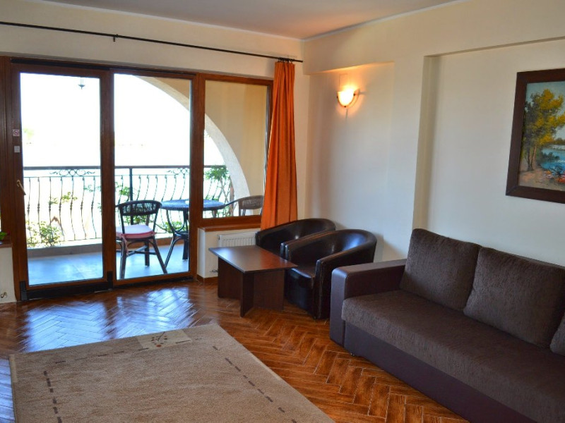 Duplex 2 camere (vedere lac): se afla la etajul 2/3, astfel: la primul nivel este un living cu canapea extensibila, balcon, baie, iar la nivelul urmator este un dormitor cu pat matrimonial, balcon si baie, capacitate maxim 5 adulti si 1 copil 0- 4 ani