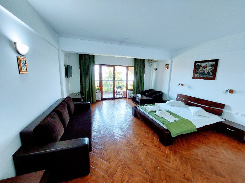 Dotari camere: aer conditionat, TV cu ecran plat, mini frigider, internet gratuit, cutie de valori, baie dotata cu cabina dus, uscator par, prosoape, papuci, produse ingrijire personala: sampon, sapun, gel dus.