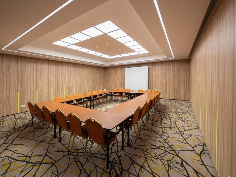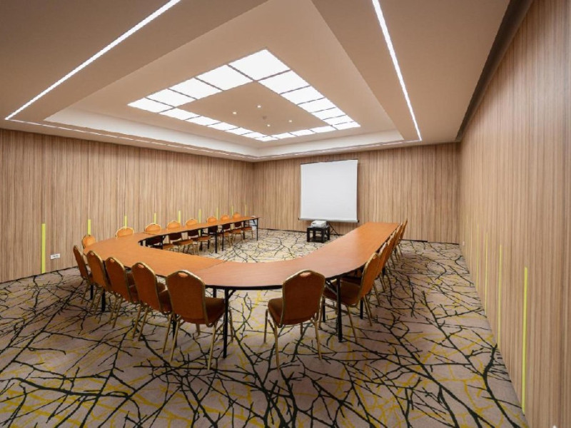 Sali de conferinta: 11 - cu o capacitate intre 20- 450 locuri, dotate cu: scaune cu masuta, desk-uri, flipchart-uri, retroproiectoare, ecrane proiectoare multimedia, table magnetice, panouri afisaj, copiator, telefon, fax, calculatoare, sistem de amplificare sunet, microfoane fixe si mobile, servicii secretariat.