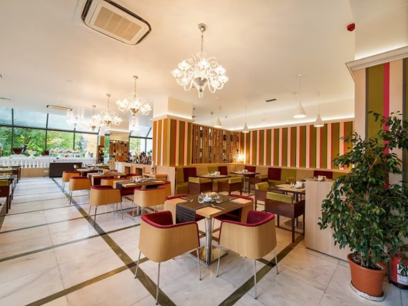 Restaurant PANORAMIC - restaurant classic - capacitate 350 locuri, Restaurant ITALIAN - specific italian - capacitate 80 - 100 locuri, Restaurant TIROL - specific tirolez - capacitate 130 - 150 locuri, Centru SPA piscina, jacuzzi, sauna umeda, sauna uscata, sala fitness, parcare. Centrul de Divertisment, are 4 piste de bowling, 2 mese debiliard, diverse jocuri (Darts, Air Hockey, Fusball) si un cafe-bar.