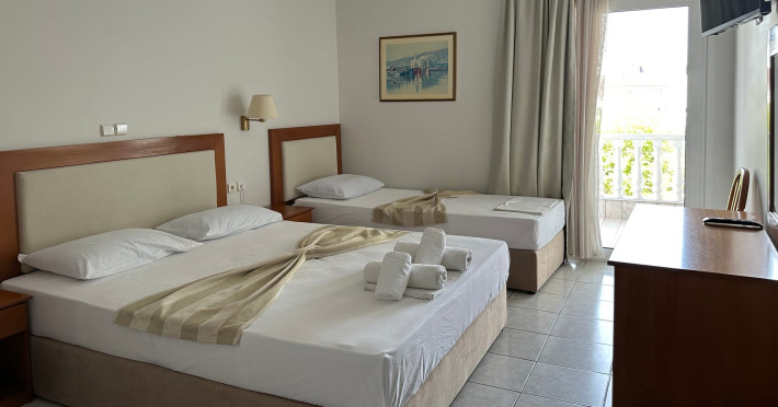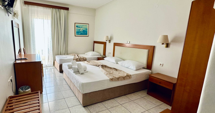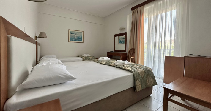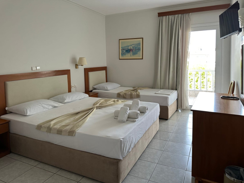 Ioni offers comfortable rooms with views either of the sea or Ioni's lovely grounds. Each room has a balcony, satellite TV and refrigerator.