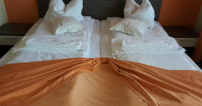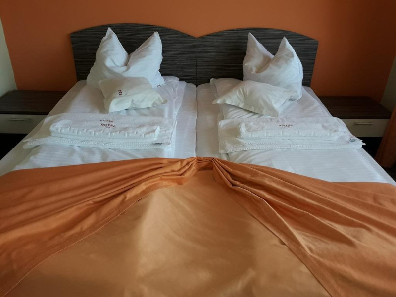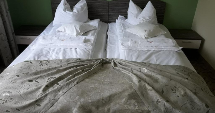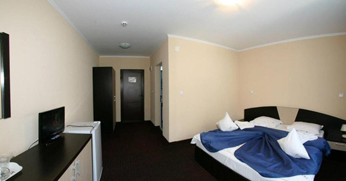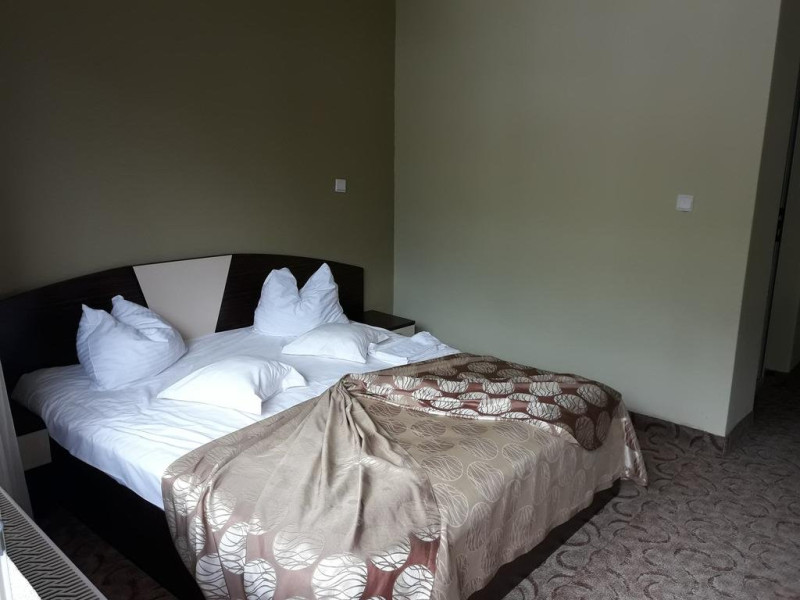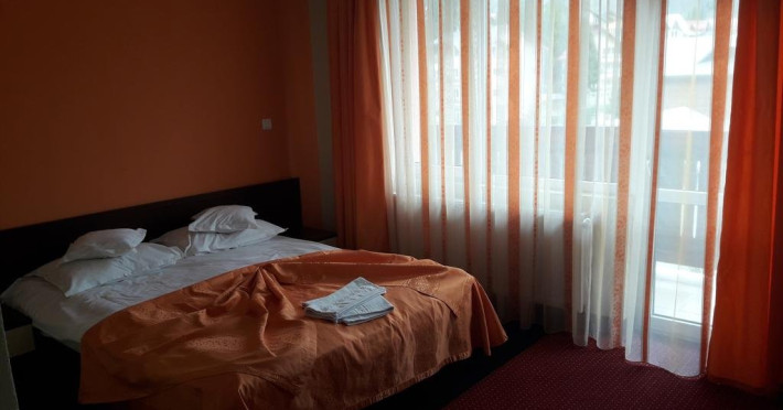 Hotelul dispune de 70 locuri de cazare distribuite in 34 de camere dintre care: 18 sunt camere cu pat matrimonial, 8 camere duble twin si 4 apartamente compuse din 2 camere duble twin/matrimoniale fiecare. Fiecare camera dispune de baie proprie precum si alte dotari: Lcd cu cablu, frigider, balcon sau terasa cu vedere la munte, internet wireless. Parcarea este privata si supravegheata video 24/24 si inclusa in tariful de cazare in limita locurilor disponibile.