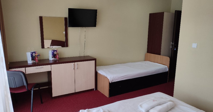 Hotelul dispune de 100 de locuri decazare repartiza in 30 de camere spatioase. Dotari: TV, minibar, baie cu dus, articole de toaleta gratuite, uscator de par - la cerere contra-cost, sistem central de incalzire, acces gratuit internet wi-fi, balcon.