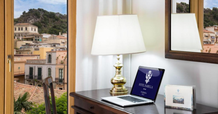 Hotelul Isabella se află in centrul Corso Umberto, principala stradă comercială din Taormina, la 200 m de Amfiteatrul Grecesc. Toate camerele au aer condiționat din iunie pană in septembrie și podea elegantă cu parchet. Camerele Hotelului Isabella au minibar, baie privată și vedere la acoperișurile din jur, la strada comercială Corso Umberto sau la Marea Ionică. Din sala de mic dejun, oaspeții pot admira rămăsite ale zidurilor romane antice ale orasului.