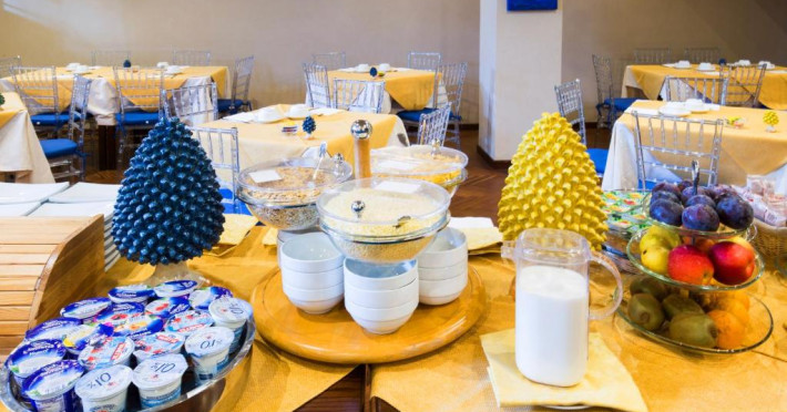 In timpul verii și dacă vremea permite, micul dejun este servit pe terasa de pe acoperiș, care are vedere la teatrul antic din apropiere și la mare. Hotelul oferă un serviciu de transfer la/de la plaja Caparena, aflată la 3 km. De asemenea, oaspetii beneficiază de reducere la facilitătile de wellness disponibile la hotelurile partenere din apropiere.