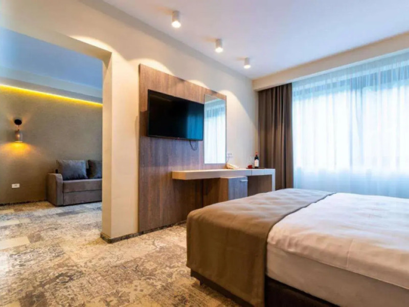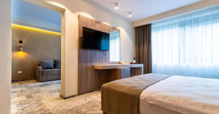 A great option for a journey on a budget - hotel Hotel Izvoare Caciulata is located in Calimanesti. This hotel is located nearby from the city center.A great option for a journey on a budget - hotel Hotel Izvoare Caciulata is located in Calimanesti. This hotel is located nearby from the city center.You can stop by the bar. You can stop by the restaurant. Free Wi-Fi is available on the territory. Ask for more information when checking in. If you travel by car, you can park in a parking zone.Also, the following services are available for guests at the hotel: a massage room, a sauna and a doctor. Guests who love doing sports will be able to enjoy a fitness center. Swimming fans are going to enjoy a pool and an outdoor pool. For the free movement around the city, the hotel offers a transfer for you.Accessible for guests with disabilities: the elevator helps them to go to the highest floors. Additional services that the hotel offers to its guests: a laundry, dry cleaning and a safe-deposit box.You can stop by the bar. You can stop by the restaurant. Free Wi-Fi is available on the territory. Ask for more information when checking in. If you travel by car, you can park in a parking zone.Also, the following services are available for guests at the hotel: a massage room, a sauna and a doctor. Guests who love doing sports will be able to enjoy a fitness center. Swimming fans are going to enjoy a pool and an outdoor pool. For the free movement around the city, the hotel offers a transfer for you.Accessible for guests with disabilities: the elevator helps them to go to the highest floors. Additional services that the hotel offers to its guests: a laundry, dry cleaning and a safe-deposit box.Guests will find the following in the room: a shower, a TV, a mini-bar and slippers. Please note that the listed services may not be available in all the rooms.Guests will find the following in the room: a shower, a TV, a mini-bar and slippers. Please note that the listed services may not be available in all the rooms.Datorita dinamicitatii domeniului disponibilitatea ofertelor se modifica de la un moment la altul. De aceea ofertele sunt valabile in limita locurilor disponibile. Agentia nu este responsabila pentru eventualele neconcordante care pot aparea intre informatiile privind tarifele si alte detalii din site si informatiile primite in agentie. In aceste cazuri vor avea prioritate, intotdeauna, informatiile primite in agentie.