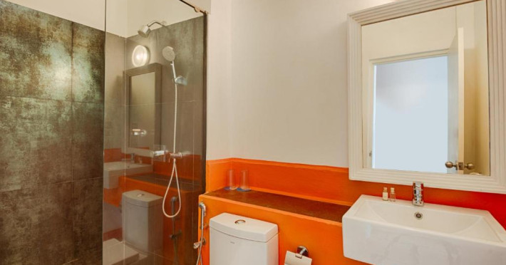 Camerele confortabile au podea cu gresie, aer condiționat, mobilier simplu, ventilator, birou, TV cu ecran plat cu canale prin cablu și zonă de relaxare. Baia privată este dotată cu duș.