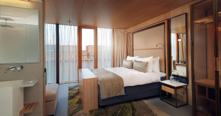Camerele acestui hotel tip boutique au 30 m² și o atmosferă indoneziană. Majoritatea camerelor superioare sunt prevăzute cu balcon cu vedere panoramică la raul IJ, pe o parte și vedere la gara centrală, pe partea orientată spre malul apei.