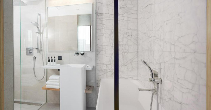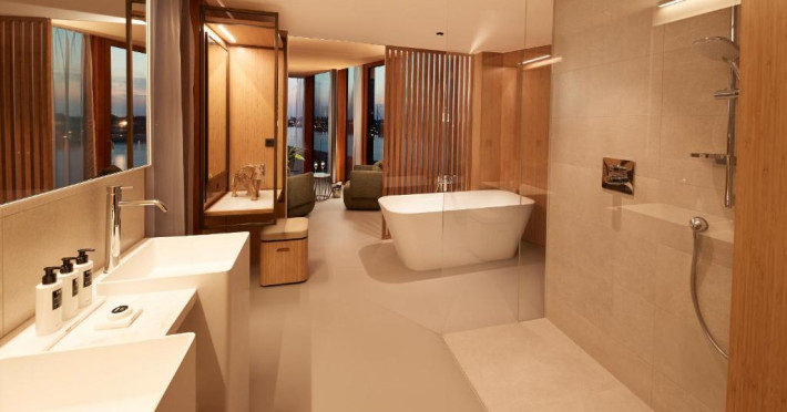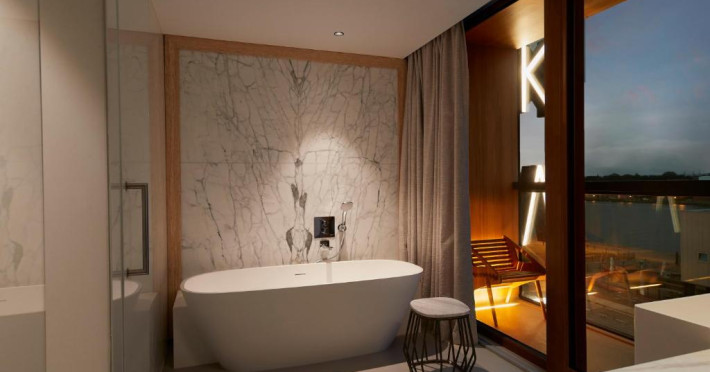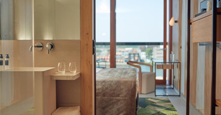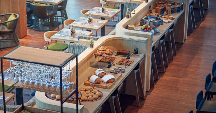 Puteți să luați micul dejun, pranzul și cina la Café Jakarta sau să savurați o băutură la sky barul Malabar, de la etajele 8 și 9. La proprietate se servește in fiecare dimineață un mic dejun tip bufet, care este inclus in tarif. Puteți să vă relaxați in zona de wellness și in piscina cu vedere la raul IJ.