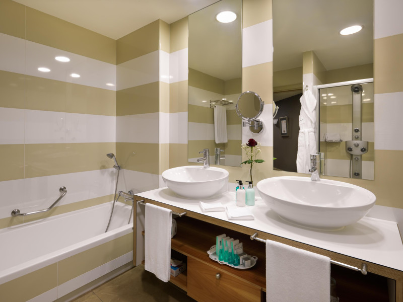 The apart hotel Hotel Jardines De Nivaria is located in the vicinity of a sandy beachstone beach and about 50 m from the sea. The nearest bars and restaurants can be found at a distance of around 100 m. The city centre is around 500 m away. A supermarket and other shops you also reach after approximately 100 m. There is a shuttle between the hotel and the airport (for a fee). The beach is patrolled by a lifeguard. Directly next to the beach there is a promenade where you can take leisurely walks. The air-conditioned hotel is equipped with a 24h reception (check-in is possible around the clock), a lobby bar, Wi-Fi, 10 lifts, a shop, a boutique, cash machine, a hairdresser, a jacuzzi, showers and changing rooms, a first aid kit, parking spaces as well as a TV lounge with satellite TV. In the outdoor area of the property you will find a garden as well as a heated salt water pool (open all year), where sun loungers, sun umbrellas and pool towels are available for free. For children there is also a children's pool. Furthermore, you can relax outdoors on the sun terrace. For very young guests, kid`s chairs can be provided). You can store your luggage in the hotel's storage room. There is also a laundry service available at an additional cost to customers as well as an ironing service. For your comfort the hotel page will ensure you are looked after. The rooms are cleaned. If necessary, you can contact the medical centre at any time. Guests at the accommodation can get a wake-up call from the hotel personnel. For conventions and other business meetings, the hotel offers a business centre as well as a conference area with printer as well as overhead projector. If you want to explore the holiday region, you can use the car and motorbike rental service close to the hotel. At the hotel reception, tickets are offered for excursions in the area. For guests on their honeymoon, the hotel has special offers such as special honeymoon packages. In your hotel, a lot of focus is placed on sustainability. This includes the hotel`s own recycling bins and organic food. The hotel requires that all guests pay a deposit upon arrival. Due to its barrier-free facilities , such as barrier-free entrances, wheelchair accessible rooms and wheelchair-accessible bathrooms, the hotel is also suitable for wheelchair users (dimensions: lift door width: 90 m, door width room: 82 m). Catering As catering services the hotel offers half board and full board. Breakfast is offered continental, from the buffet or à la carte (extras on request). Enjoy your lunch à la carte. Dinner is also served as a buffet or à la carte (extras on request). For the meals, there are a restaurant with terrace (calorie-reduced, gluten-free and vegetarian dishes) and several bars, the cafeteria as well as the pool bar. For dinner, guests are asked to wear appropriate clothing in the restaurant. Distances