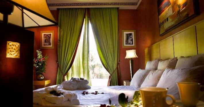 The hotel is located in the middle of the Marrakech palm grove. This luxurious hotel with stunning décor is a peaceful heaven at the foot of the spectacular Atlas Mountains, around 8 km from Gueliz and the city centre. Menara Airport is approximately 15 km from the hotel.Along with the harmonious colours and inviting textures, guests will be seduced by the hotels exclusively designed furniture and the magnificent suites amidst an enchanting garden. Creating a real feeling of well-being, this hotel is the perfect place to relax and unwind. The air-conditioned hotel welcomes guests in a lobby with 24-hour reception and check-out services, a hotel safe, currency exchange facilities and a newspaper stand, and facilities include a hairdressing salon, childrens playground, kids club and a café, bar, pub, disco and a breakfast room. Guests may also take advantage of the room and laundry services, and private parking is available.Each room features an en suite bathroom, a double or king-size bed, direct dial telephone, satellite TV, an in-room safe, minibar, individually regulated air conditioning and a private terrace.The hotel offers an indoor and outdoor swimming pool with childrens swimming area, poolside snack bar and a sun terrace with sun loungers and parasols laid out ready for use. Guests may also work out in the gym, relax in the sauna or take advantage of the massage service. Palmeraie Golf Course is approximately 100 m from the hotel.The hotel is located in the middle of the Marrakech palm grove. This luxurious hotel with stunning décor is a peaceful heaven at the foot of the spectacular Atlas Mountains, around 8 km from Gueliz and the city centre. Menara Airport is approximately 15 km from the hotel.Along with the harmonious colours and inviting textures, guests will be seduced by the hotels exclusively designed furniture and the magnificent suites amidst an enchanting garden. Creating a real feeling of well-being, this hotel is the perfect place to relax and unwind. The air-conditioned hotel welcomes guests in a lobby with 24-hour reception and check-out services, a hotel safe, currency exchange facilities and a newspaper stand, and facilities include a hairdressing salon, childrens playground, kids club and a café, bar, pub, disco and a breakfast room. Guests may also take advantage of the room and laundry services, and private parking is available.Each room features an en suite bathroom, a double or king-size bed, direct dial telephone, satellite TV, an in-room safe, minibar, individually regulated air conditioning and a private terrace.The hotel offers an indoor and outdoor swimming pool with childrens swimming area, poolside snack bar and a sun terrace with sun loungers and parasols laid out ready for use. Guests may also work out in the gym, relax in the sauna or take advantage of the massage service. Palmeraie Golf Course is approximately 100 m from the hotel.