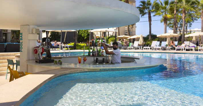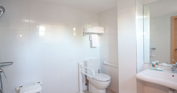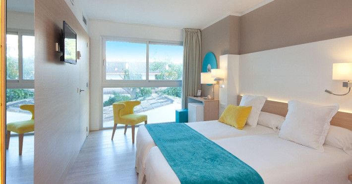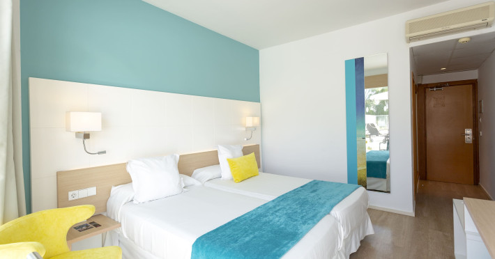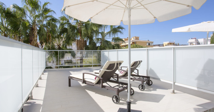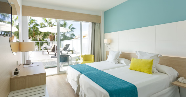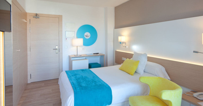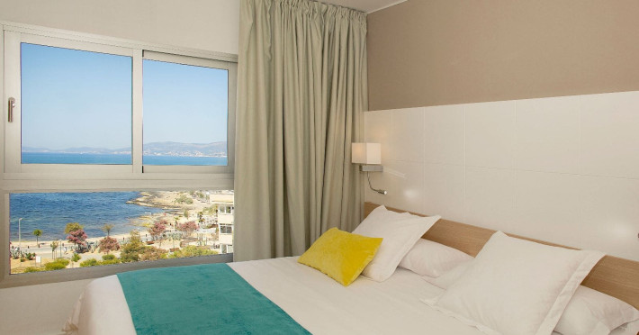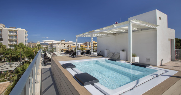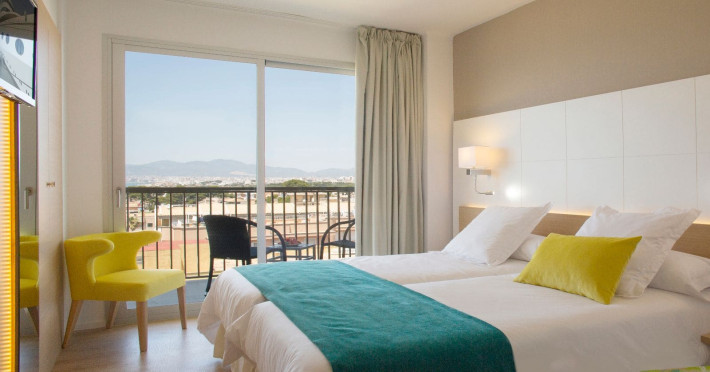 The hotel JS Palma Stay **** (Adults only +16) is located approx. 300 m from a sandy beach. The nearest restaurants and bars can be found within 100 m. The old town is around 6 km away. A supermarket and other shops you reach after approx. 500 m. In the surrounding a disco (approx. 2 km away), a leisure park (approx. 5 km), an aqua park (approx. 7 km), a theatre (approx. 6 km), a cinema (approx. 6 km) and a golf course (approx. 15 km) offer entertainment during the best time of the year. The beach is patrolled by a lifeguard. Here, there are cushions, sun umbrellas and beach towels for a fee available. Directly next to the beach there is a promenade where you can take leisurely walks. The air-conditioned hotel is equipped with a 24h reception (check-in is possible around the clock), a lobby bar, Wi-Fi, a lift, a jacuzzi, showers and changing rooms as well as a TV lounge with satellite TV. In the outdoor area you will find a garden as well as a seasonally open, heated pool (open all year), where you can rent pool towels for a fee and sun loungers and sun umbrellas are available for free. Furthermore, you can relax outdoors on the sun terrace. Inside the hotel you can use an indoor pool. You can store your valuables in the safe (extra fee), and your luggage in the hotel`s storage roomn. To clean your clothes there are a laundry service (extra fee) and an ironing service. If necessary, you can contact the medical centre (for a fee). Guests at the accommodation can get a wake-up call from the hotel personnel. For conventions and other business meetings, the hotel offers a conference area (extra fee) with printer as well as overhead projector. If you want to explore the holiday region, you can use the car and motorbike rental service close to the hotel (extra fee). In addition, the hotel sells tickets excursions. Pets like cats and dogs up to 7 kg are allowed in the hotel (on request). The hotel requires that all guests pay a deposit upon arrival. Due to its barrier-free facilities , such as barrier-free entrances, wheelchair accessible rooms and wheelchair-accessible bathrooms, the hotel is also suitable for wheelchair users (dimensions: entrance door width: 80 m, lift door width: 90 m, lift depth: 100 m). Catering As catering services the hotel offers half board, breakfast only and self-catering. Breakfast is offered from the buffet. Dinner is also served as a buffet. For the meals, there are a buffet restaurant with terrace (calorie-reduced, gluten-free and vegetarian dishes) and the cafeteria as well as the pool bar. For dinner, guests are asked to wear appropriate clothing in the restaurant. Distances- Nearest town: approx. 6 km