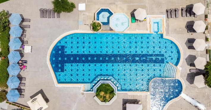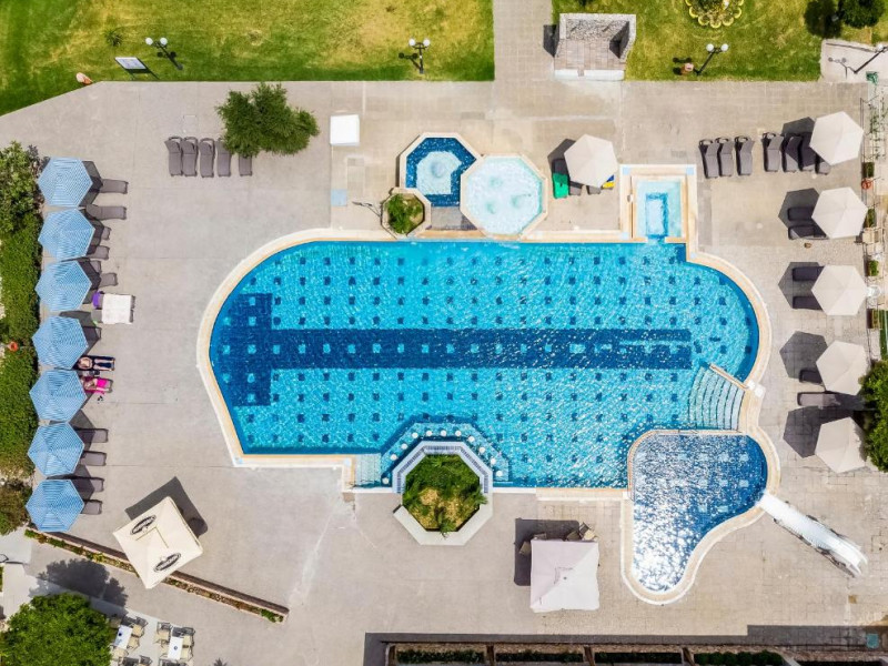 Facilități hotel: recepție 24h, 2 piscine (una cu hidromasaj), 2 piscine pentru copii (una cu tobogan), loc de joacă pentru copii, jacuzzi, restaurant, shuttle la plajă (de 4 ori pe zi), restaurant, baruri, teren tenis, fotbal și baschet, sală de gimnastică