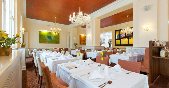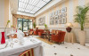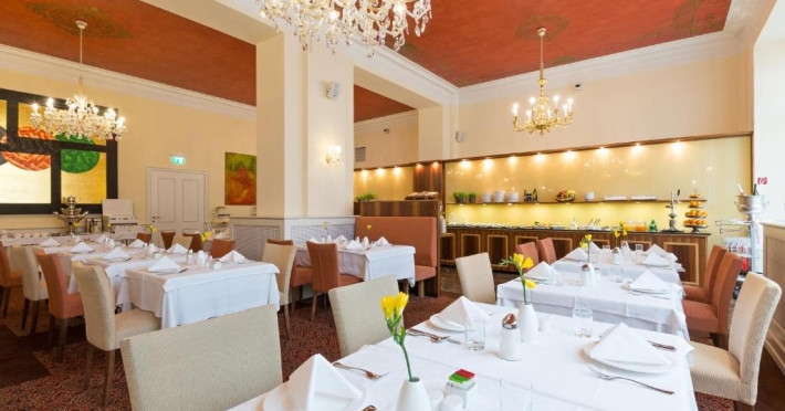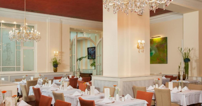 Dimineața se oferă un mic dejun vienez bogat de tip bufet. La bar și in grădina de iarnă se pot savura băuturi și gustări.