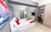 Hotelul se mandrește cu restaurantul propriu unde puteți savura specialități mediteraneene și albaneze autentice. La doar cateva minute de mers pe jos veți găsi principala promenadă a orașului, cu numeroase restaurante, cafenele și magazine.