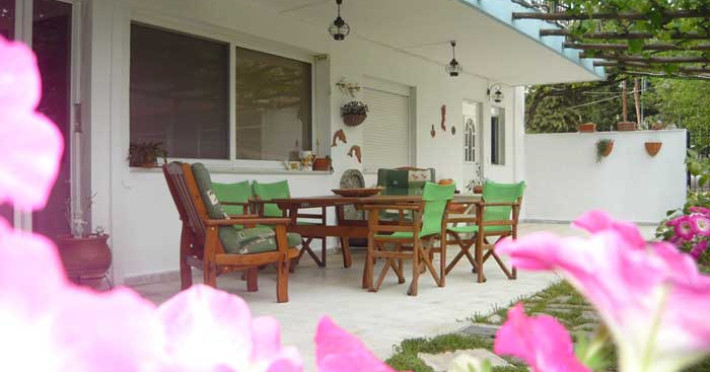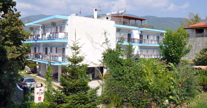 Localizat la o distanta de 600 m de centrul statiunii Asprovalta, la numai 150 de plaja si 80 km distanta de orasul Salonic.