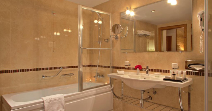 Camerele luminoase de la Kempinski Hotel Grand Arena sunt dotate cu mochetă, aer condiționat, Tv cu canale prin satelit și seif. Fiecare cameră dispune de un aparat pentru preparare cafea sau ceai, cană-fierbător și minibar. Oaspeții pot solicita serviciul de room service pentru a servi masa sau diverse băuturi. Oaspeții au acces gratuit la serviciul Wi-fi în camere. Camerele au balcon cu vedere la piscină sau la munte. În camere există baie cu cadă sau duș, foehn, articole de toaletă gratuite, precum și halate de baie și papuci. Curățenia in cameră se face zilnic. Proprietatea oferă camere pentru familie cu o suprafață mai mare și un număr mai mare de paturi față de cele standard.
