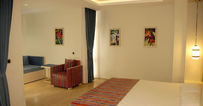baie, uscator de par, aer conditionat centralizat, TV, telefon, mini-bar (apa la sosire), seif (gratuit), pardoseala - mocheta (Hotel), marmura (Village), laminat (Annex), balcon / terasa / fara balcon (Village), room service - 24 ore pe zi (Hotel, contra cost), în camera se face curatenie zilnic, schimbarea asternuturilor - 3 ori pe saptamana , schimbarea prosoapelor - 3 ori pe saptamana