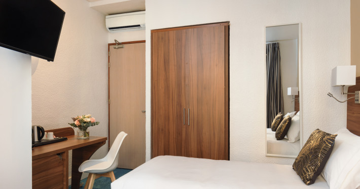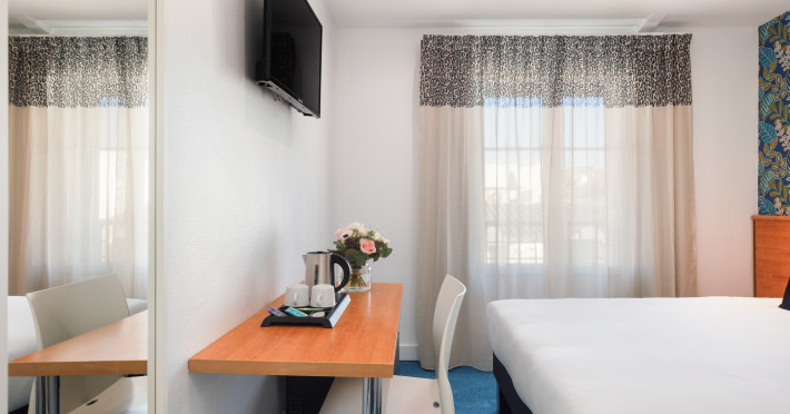 The hotel Hôtel Khla Nice is located approximately 1,1 km from a beach. The city centre is around 850 m away. The hotel is equipped with a 24h reception, Wi-Fi as well as a lift. You can store your luggage in the hotel's storage room. Due to its barrier-free facilities , such as barrier-free entrances, the hotel is also suitable for wheelchair users. Catering Breakfast is offered from the buffet. Distances