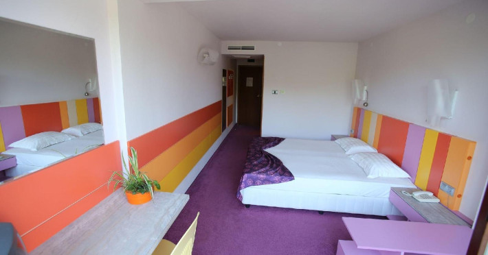 Location This hotel is located within a wonderful park complex in the holiday resort of Sveti Konstantin, in a quiet and relaxing position about 500 m from the beach. The town and tourist centre with its countless shops as well as bars and restaurants can be reached on foot in just a few minutes (approximately 500 m). The nearest public transport stop is only 300 m from the hotel. Facilities The hotel has 12 suites and 98 double rooms, which are located on 4 storeys and are reachable by lift. Multilingual staff (English, German, French) at the reception desk in the lobby are ready to assist you with check-in and check-out. Amenities include a cloakroom, baggage storage service, safe and currency exchange service. Wireless internet access allows guests to stay connected while on holiday. The grounds of the hotel feature a playground and a lovely garden. Additional facilities include a playroom. Guests arriving by car can park their vehicles in the car park. Further services and facilities include a car hire service, medical assistance, a transfer service, room service, a laundry service, a hairdresser and a hotel shuttle bus. Active guests can make use of the bicycle hire service to explore the surrounding area. A fax machine is available for guests' business needs. Rooms Air conditioning and central heating ensure that rooms maintain comfortable temperatures. A balcony is included as standard in some rooms. All rooms are carpeted and include a double bed and a sofa bed. Separate bedrooms are available. Children's beds can be requested for younger guests. A safe, a minibar and a desk are also available. A kitchenette with a refrigerator is also provided. A direct dial telephone, a television with satellite/cable channels and WiFi are provided as well. A hairdryer and a vanity mirror are available in the bathrooms, which are equipped with a shower and a bathtub. The hotel has family rooms and 110 non-smoking rooms. Sports/Entertainment While the adults swim a few laps in the outdoor pool, children can enjoy splashing about in their own swimming area. Guests can treat themselves to refreshing drinks at the poolside snack bar and a relaxing soak in the hot tub. A short break or an entire afternoon on the sun terrace, which features sun loungers and parasols, is time well spent. For guests who wish to keep active, cycling/mountain biking and tennis are available. With water aerobics and aquafit available, the hotel also caters to water sports enthusiasts. Sports enthusiasts are also offered a wide range of indoor activities, including a gym, table tennis, billiards, darts and aerobics. There is a wellness area with a spa, a sauna, a beauty salon and massage treatments. Subject to charge: a steam bath. Additional leisure activities include an entertainment programme, a kids' club, a kids' disco, a dance club and a nightclub. Copyright GIATA 2004 - 2024. Multilingual, powered by www.giata.com for client no. 124971 Meals Various dining options are available, including a dining room, a café and a bar. A number of specialities await guests in the air-conditioned, non-smoking restaurant. Catering options include bed and breakfast, half board and all-inclusive. All-inclusive holidaymakers enjoy special extras like snacks, in addition to a selection of alcoholic and non-alcoholic beverages. A generous breakfast buffet, a lunch à la carte and a comprehensive dinner buffet offer plenty of delicious variety. Staff are also happy to provide children's meals. Payment The following credit cards are accepted: VISA and MasterCard.CheckIn:14:00:17-CheckOut:11:00:17Location This hotel is located within a wonderful park complex in the holiday resort of Sveti Konstantin, in a quiet and relaxing position about 500 m from the beach. The town and tourist centre with its countless shops as well as bars and restaurants can be reached on foot in just a few minutes (approximately 500 m). The nearest public transport stop is only 300 m from the hotel. Facilities The hotel has 12 suites and 98 double rooms, which are located on 4 storeys and are reachable by lift. Multilingual staff (English, German, French) at the reception desk in the lobby are ready to assist you with check-in and check-out. Amenities include a cloakroom, baggage storage service, safe and currency exchange service. Wireless internet access allows guests to stay connected while on holiday. The grounds of the hotel feature a playground and a lovely garden. Additional facilities include a playroom. Guests arriving by car can park their vehicles in the car park. Further services and facilities include a car hire service, medical assistance, a transfer service, room service, a laundry service, a hairdresser and a hotel shuttle bus. Active guests can make use of the bicycle hire service to explore the surrounding area. A fax machine is available for guests' business needs. Rooms Air conditioning and central heating ensure that rooms maintain comfortable temperatures. A balcony is included as standard in some rooms. All rooms are carpeted and include a double bed and a sofa bed. Separate bedrooms are available. Children's beds can be requested for younger guests. A safe, a minibar and a desk are also available. A kitchenette with a refrigerator is also provided. A direct dial telephone, a television with satellite/cable channels and WiFi are provided as well. A hairdryer and a vanity mirror are available in the bathrooms, which are equipped with a shower and a bathtub. The hotel has family rooms and 110 non-smoking rooms. Sports/Entertainment While the adults swim a few laps in the outdoor pool, children can enjoy splashing about in their own swimming area. Guests can treat themselves to refreshing drinks at the poolside snack bar and a relaxing soak in the hot tub. A short break or an entire afternoon on the sun terrace, which features sun loungers and parasols, is time well spent. For guests who wish to keep active, cycling/mountain biking and tennis are