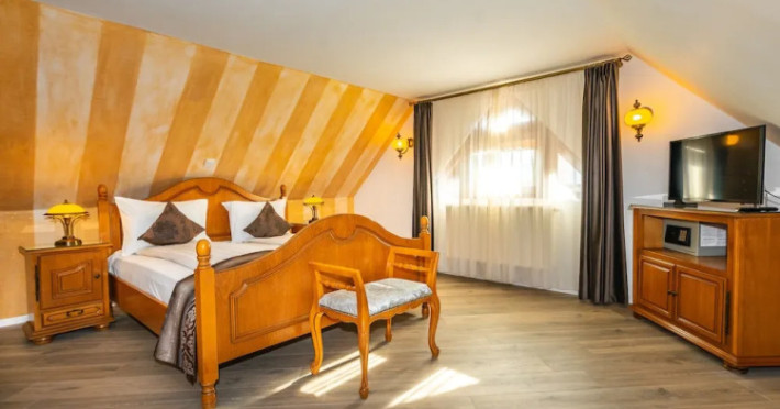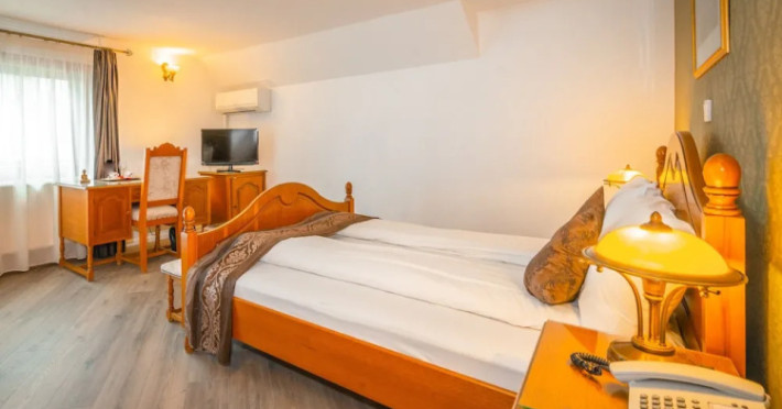 Good choice if youre looking forward to taking some rest at the hotel as much as to walking around the city. Hotel Hotel Korona is located in Sighisoara. This hotel is located minutes away from the city center.Good choice if youre looking forward to taking some rest at the hotel as much as to walking around the city. Hotel Hotel Korona is located in Sighisoara. This hotel is located minutes away from the city center.Spend an evening in a nice atmosphere of the bar. Taste the local cuisine and have a rest in the restaurant. Free Wi-Fi is available on the territory. Ask for more information when checking in. If you travel by car, theres a free parking zone.Also, the following services are available for guests at the hotel: a massage room, a solarium and a spa center. Guests who love doing sports will be able to enjoy a gym. You will find these entertainment amenities on the premises: a ping-pong area. Tourists who cant live without swimming will appreciate a pool and an outdoor pool.In the hotel, you can arrange a business meeting, a board meeting, and even a job as there is a business center and event facilities. The tour assistance desk of the hotel will help you book an excursion. For the free movement around the city, the hotel offers a transfer for you. Additional services that the hotel offers to its guests: a laundry, dry cleaning, ironing, press, car rental, a safe-deposit box and a concierge.The staff of the hotel speaks English, Spanish and German.Spend an evening in a nice atmosphere of the bar. Taste the local cuisine and have a rest in the restaurant. Free Wi-Fi is available on the territory. Ask for more information when checking in. If you travel by car, theres a free parking zone.Also, the following services are available for guests at the hotel: a massage room, a solarium and a spa center. Guests who love doing sports will be able to enjoy a gym. You will find these entertainment amenities on the premises: a ping-pong area. Tourists who cant live without swimming will appreciate a pool and an outdoor pool.In the hotel, you can arrange a business meeting, a board meeting, and even a job as there is a business center and event facilities. The tour assistance desk of the hotel will help you book an excursion. For the free movement around the city, the hotel offers a transfer for you. Additional services that the hotel offers to its guests: a laundry, dry cleaning, ironing, press, car rental, a safe-deposit box and a concierge.The staff of the hotel speaks English, Spanish and German.In the room, for you, there is an alarm clock, a TV, a mini-bar, a bathrobe and slippers. Please note that the listed services may not be available in all the rooms.In the room, for you, there is an alarm clock, a TV, a mini-bar, a bathrobe and slippers. Please note that the listed services may not be available in all the rooms. FEES The following fees and deposits are charged by the property at time of service, check-in, or check-out. * A pet fee will be charged The above list may not be comprehensive. Fees and deposits may not include tax and are subject to change.Datorita dinamicitatii domeniului disponibilitatea ofertelor se modifica de la un moment la altul. De aceea ofertele sunt valabile in limita locurilor disponibile. Agentia nu este responsabila pentru eventualele neconcordante care pot aparea intre informatiile privind tarifele si alte detalii din site si informatiile primite in agentie. In aceste cazuri vor avea prioritate, intotdeauna, informatiile primite in agentie.