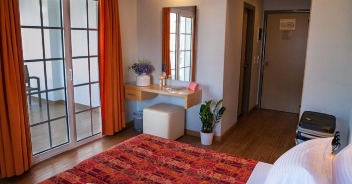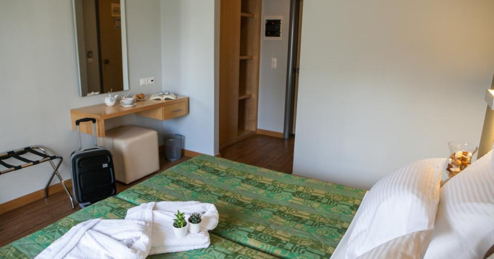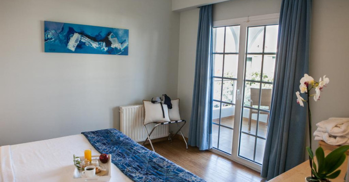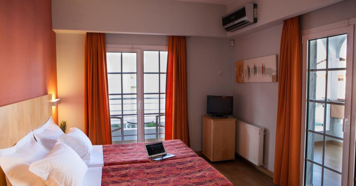 Camerele luminoase de la Kronos Hotel sunt dotate cu aer condiționat, Tv și seif. În camere există baie cu duș. Oaspeții au la dispoziție serviciul de room service pentru a servi masa sau diverse băuturi. Oaspeții au acces gratuit la serviciul Wi-fi în camere. Curățenia in cameră se face zilnic. Proprietatea oferă camere pentru familie cu o suprafață mai mare și un număr mai mare de paturi față de cele standard. Se pot rezerva de asemenea camere pentru nefumători.
