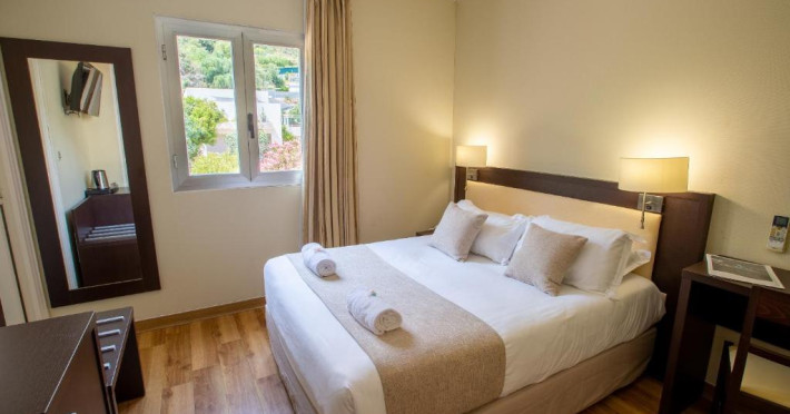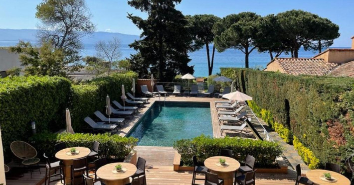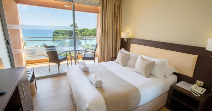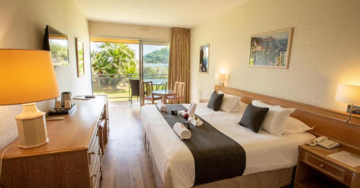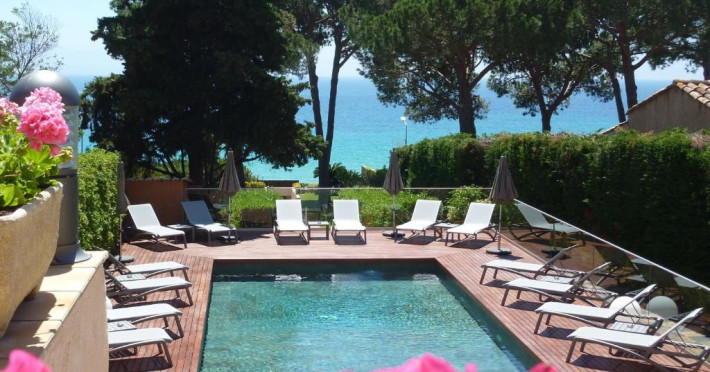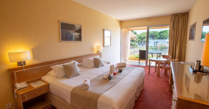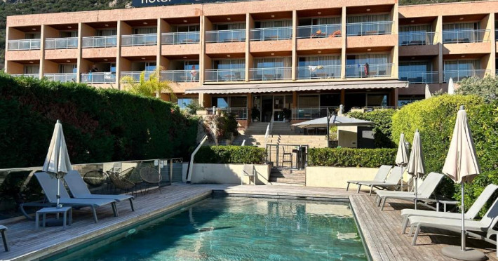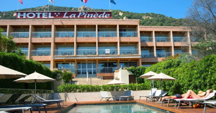 Hôtel La Pinède se află intre mare și munte, pe drumul de coastă către insule. Acesta oferă camere cu aer condiționat și izolate fonic, cu TV cu ecran plat și canale prin cablu, Wi-Fi gratuit și terase private.