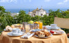 In fiecare dimineață este servit un bufet cu produse dulci și sărate, care poate fi salvat și pe terasă cand vremea permite. Restaurantul servește mancăruri mediteraneene și internaționale delicioase.