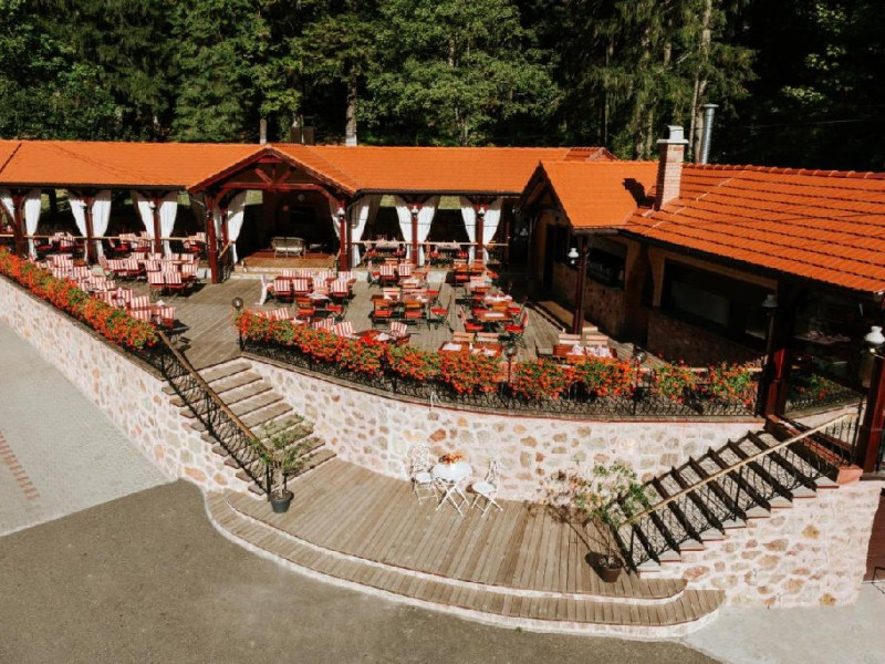 Oaspetii au la dispozitie o varietate de specialitati romanesti si maghiare traditionale, precum si preparate internationale servite in restaurant sau pe terasa.
