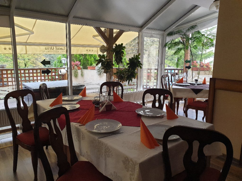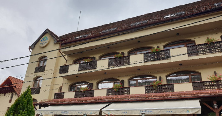 INFORMATII GENERALE:Hotelul Lacul Ursu este situat in statiunea Sovata, la 600 m de singurul lac helioterm din Europa, caruia ii poarta numele. Avand o capacitate de 54 locuri de cazare, hotelul ofera turistilor veniti sa-si petreaca sejurul in renumita statiune cele mai bune conditii de confort si relaxare.