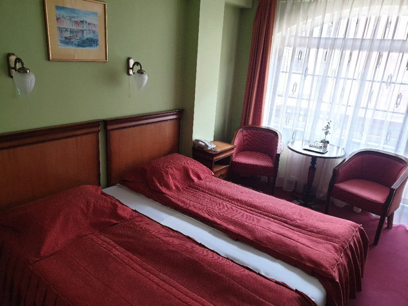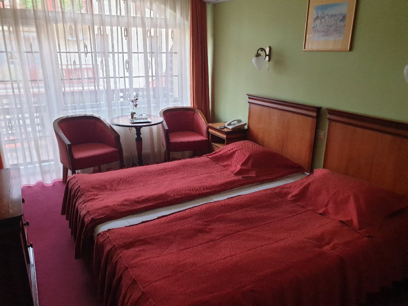 Toate camerele sunt dotate la cele mai inalte standarde: bai (cabina dus, uscator de par), televizor LCD (cablu)- casti, telefon, radio, minibar, acces Internet, acces camera - cartela magnetica. Descriere camere - camerele duble sunt dotate cu pat matrimonial sau twin, mocheta, scaune si masuta de cafea, minibar, TV, telefon, Wi-Fi, baia cu cabina de dus, uscator de par. Cele de la etajul 1 si 2 camerele dispun de balcon. Camerele de la mansarda nu dispun de balcon avand doua geamuri rabatabile si sunt mult mai spatioase.
