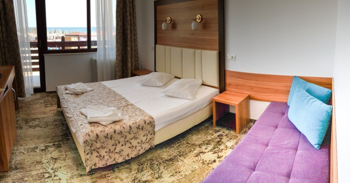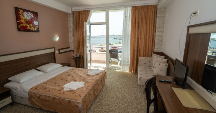 Camera Dubla Premium Vedere Mare- capacitat maxima: 2 adulti si 2 copii: 1 copil 0- 6 ani + 1 copil 7- 17 ani sau 3 adulti