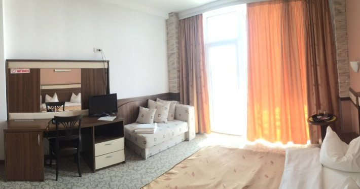 Pentru al doilea copil in camera se va achita costul patului suplimentar indiferent de varsta copiilor.Camera Dubla Vedere Partiala la Mare- capacitate maxima: 2 adulti si 2 copii: 1 copil 0- 6 ani + 1 copil 7- 17 ani sau 3 adulti