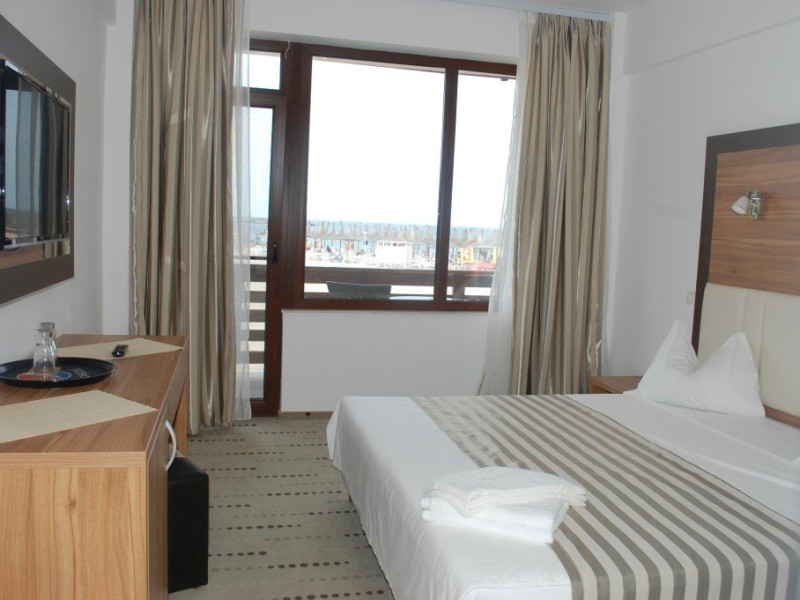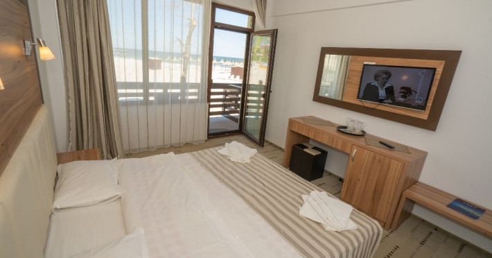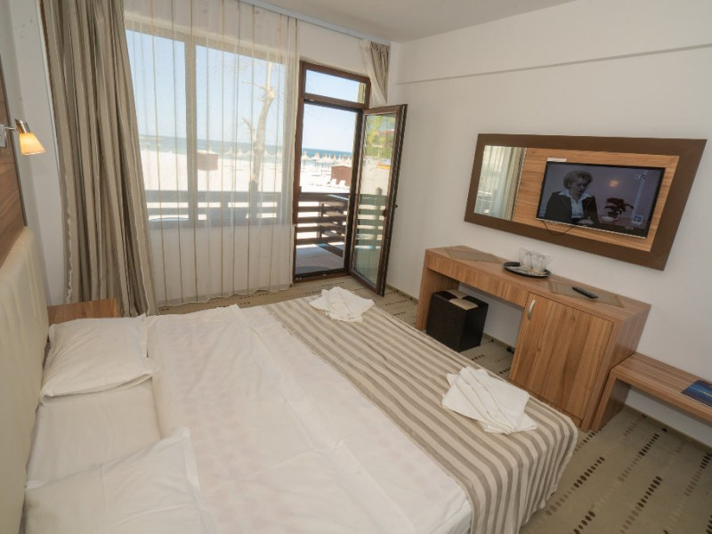 Receptie, internet wirless gratuit, parcare publica cu plata. Hotelul ofera cazare in 38 camere duble dintre care 20 premium cu vedere la mare. Fiecare camera beneficiaza gratuit de 2 sezlonguri + umbrela aferenta, pe plaja hotelului.