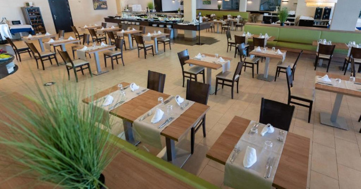 Proprietatea are un restaurant tip bufet pentru nefumători și un cocktail bar cu muzică live in fiecare zi.