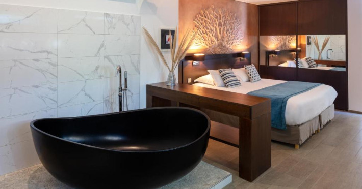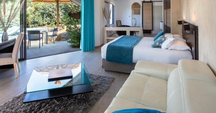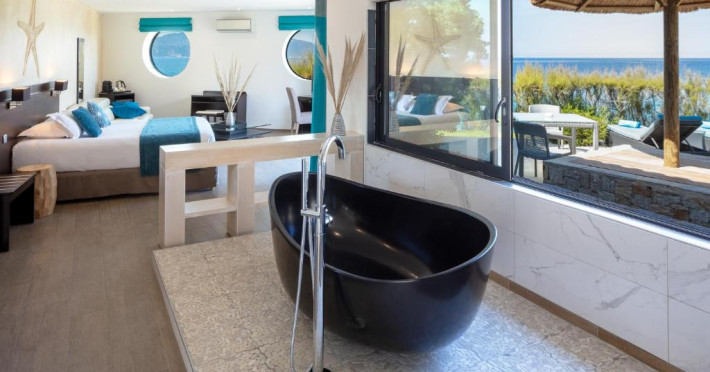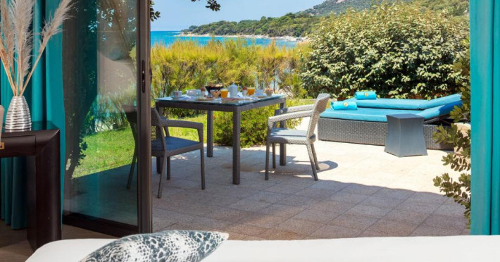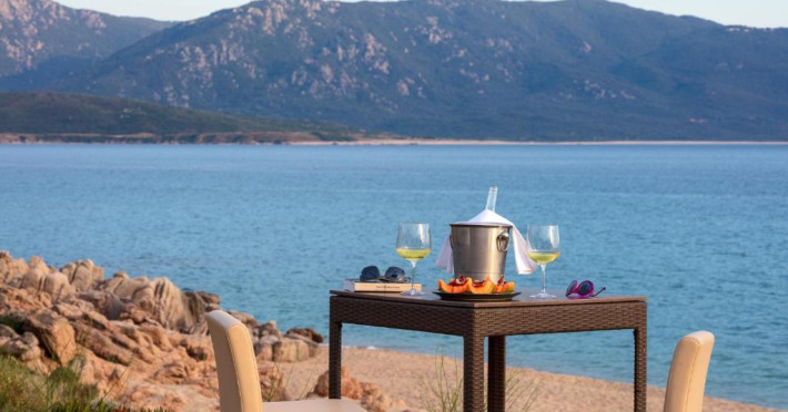 Oaspeții se pot bucura de piscina in aer liber cu terasă pentru plajă, perfectă pentru momentele de relaxare sub soarele corsican. Hotelul dispune de grădină mediteraneană și zonă de lounge cu vedere panoramică, ideală pentru serile liniștite cu un pahar de vin local.
