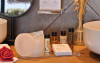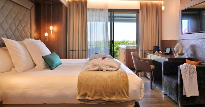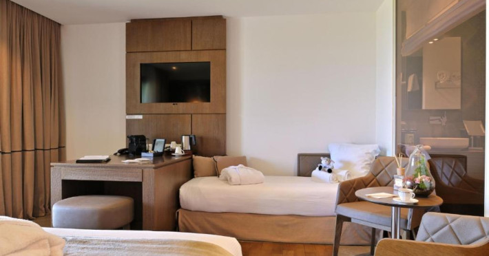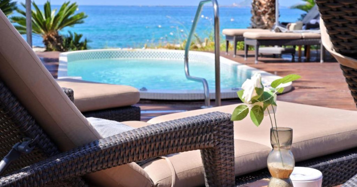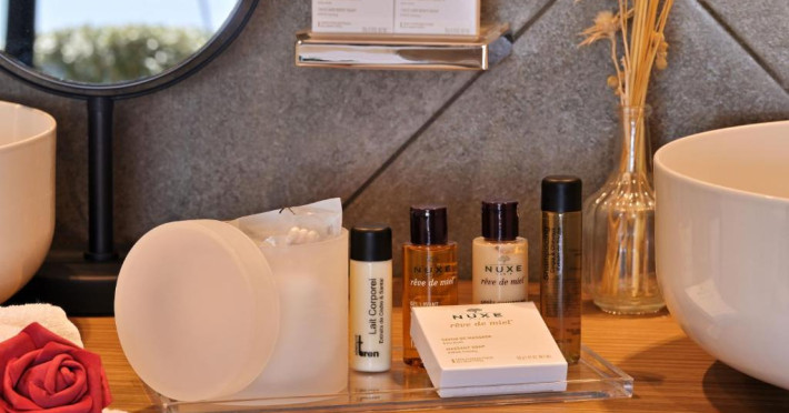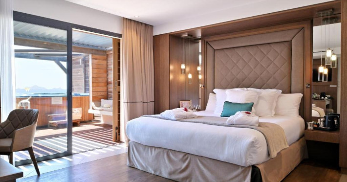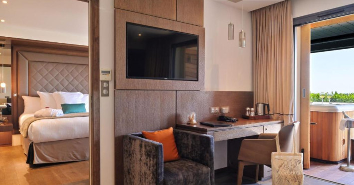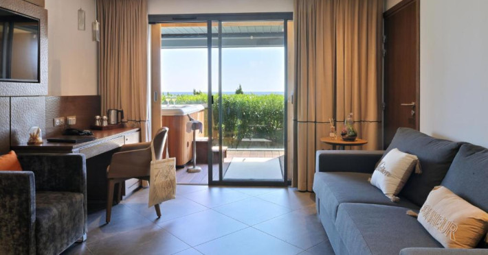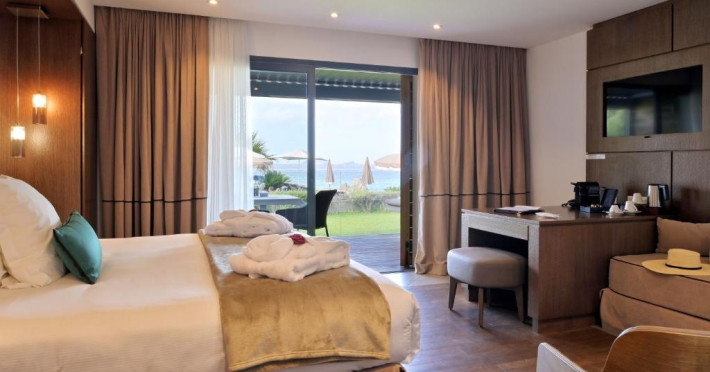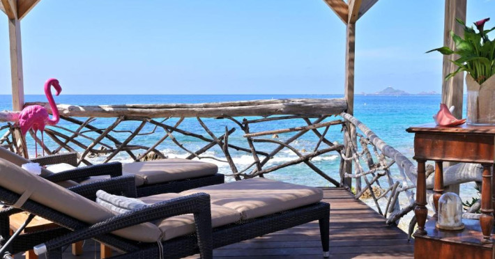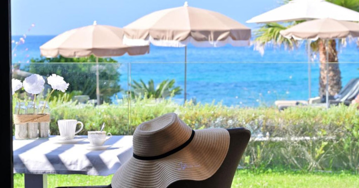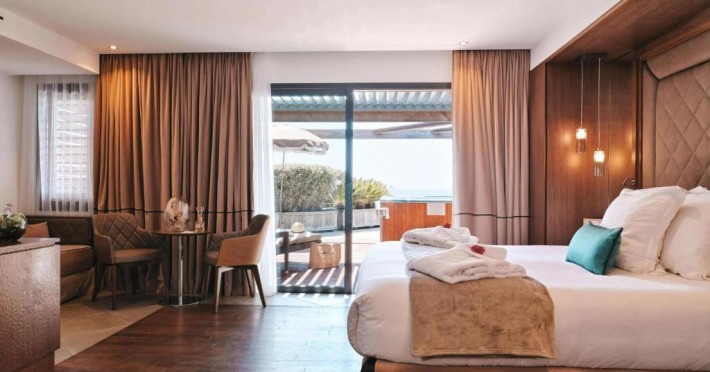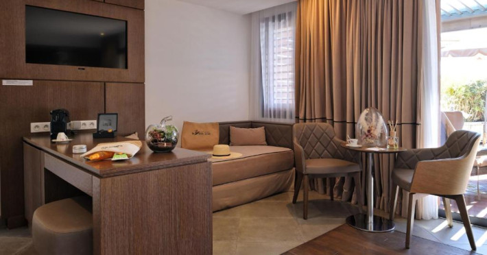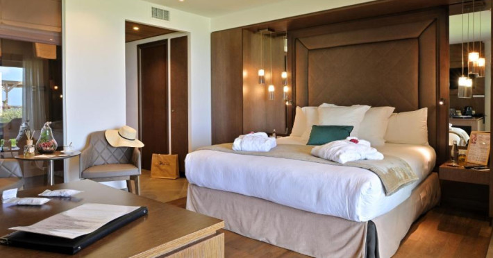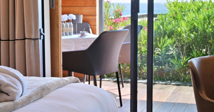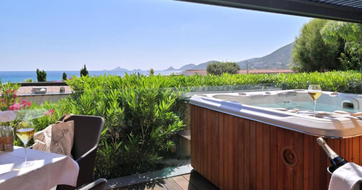 Camerele luminoase și confortabile sunt decorate in stil mediteranean și oferă vedere spre mare sau spre grădină. Oaspeții se pot bucura de micul dejun servit pe terasa cu vedere panoramică, iar restaurantul hotelului propune specialități corsicane și franceze.
