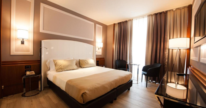 Hotelul superior de 4 stele Leon d'Oro este la 800 de metri de gara Verona Porta Nuova. Această clădire impresionantă oferă spații mari deschise și camere elegante, la doar 15 minute de mers pe jos de centrul istoric. Wi-Fi este disponibil gratuit in toate zonele.