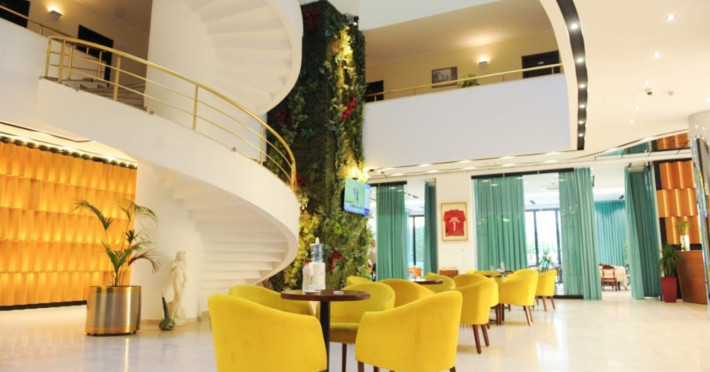The hotel HOTEL LEONARDO is located next to the private sandy beach. The nearest bars and restaurants are located directly next to the building. The city centre is around 7 km away. A supermarket and other shops you reach after around 150 m. On the beach are cushions and sun umbrellas available. The seasonally air-conditioned hotel has a 24h reception (check-in is possible around the clock), Wi-Fi, internet access, a lift, parking spaces (limited) as well as a TV lounge with satellite TV. In the outdoor area of the property you will find a supervised pool (open all year). There is also an integrated children's pool. Your valuables can be stored in the hotel safe. For the young hotel guests there is a playground. For very young guests, cots can also be provided. For your comfort there is a concierge service. The energy supply is 220, 230 and 240 Volts. In your hotel, a lot of focus is placed on sustainability. This includes the hotel`s own recycling bins, the provision of soap, shampoo and lotion dispensers and organic food and ecological meals. Euro/Master Card and Visa are accepted as means of payment. Catering As catering services the hotel offers breakfast only. Breakfast is offered continental or from the buffet. Appropriate clothing is required for lunch and dinner. Distances