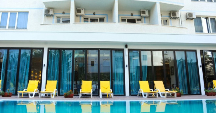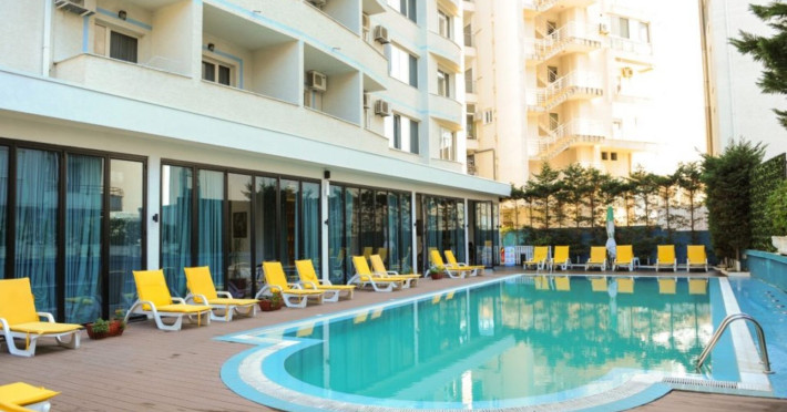 The hotel HOTEL LEONARDO is located next to the private sandy beach. The nearest bars and restaurants are located directly next to the building. The city centre is around 7 km away. A supermarket and other shops you reach after around 150 m. On the beach are cushions and sun umbrellas available. The seasonally air-conditioned hotel has a 24h reception (check-in is possible around the clock), Wi-Fi, internet access, a lift, parking spaces (limited) as well as a TV lounge with satellite TV. In the outdoor area of the property you will find a supervised pool (open all year). There is also an integrated children's pool. Your valuables can be stored in the hotel safe. For the young hotel guests there is a playground. For very young guests, cots can also be provided. For your comfort there is a concierge service. The energy supply is 220, 230 and 240 Volts. In your hotel, a lot of focus is placed on sustainability. This includes the hotel`s own recycling bins, the provision of soap, shampoo and lotion dispensers and organic food and ecological meals. Euro/Master Card and Visa are accepted as means of payment. Catering As catering services the hotel offers breakfast only. Breakfast is offered continental or from the buffet. Appropriate clothing is required for lunch and dinner. Distances- Discotheque: approximately at 2 km